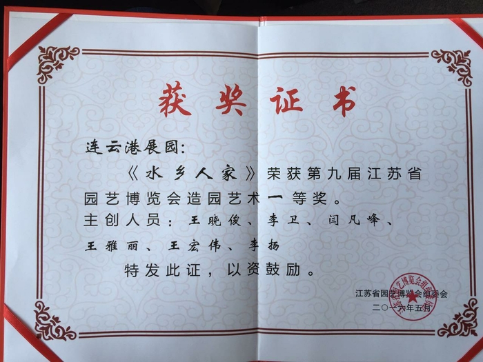 連云港展園榮獲第九屆江蘇省園藝博覽會造園藝術(shù)一等獎